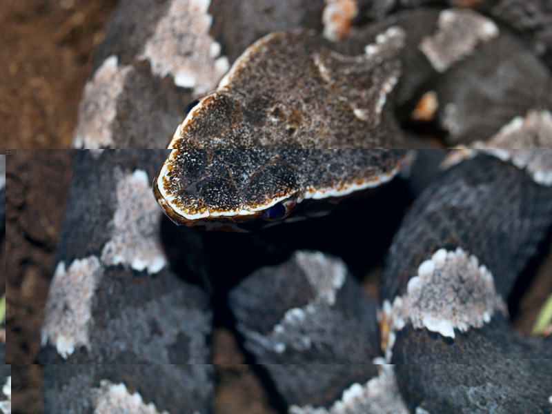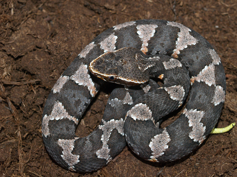 Une fois n'est pas coutume, ce magnifique mocassin mexicain, Agkistrodon taylori juvénile, photographié en bourse: