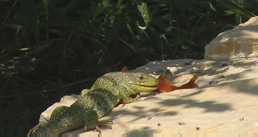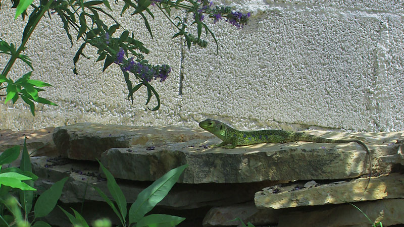 j'en ai vu une fois, il y a fort longtemps, au Portugal, deux énormes qui se courraient après dans des ruines, de petits varans.... 80 cm au bas mot.