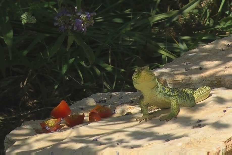 hier je lui avais mis des bouts de tomate sur le muret, il est venu et a sucer le jus....
