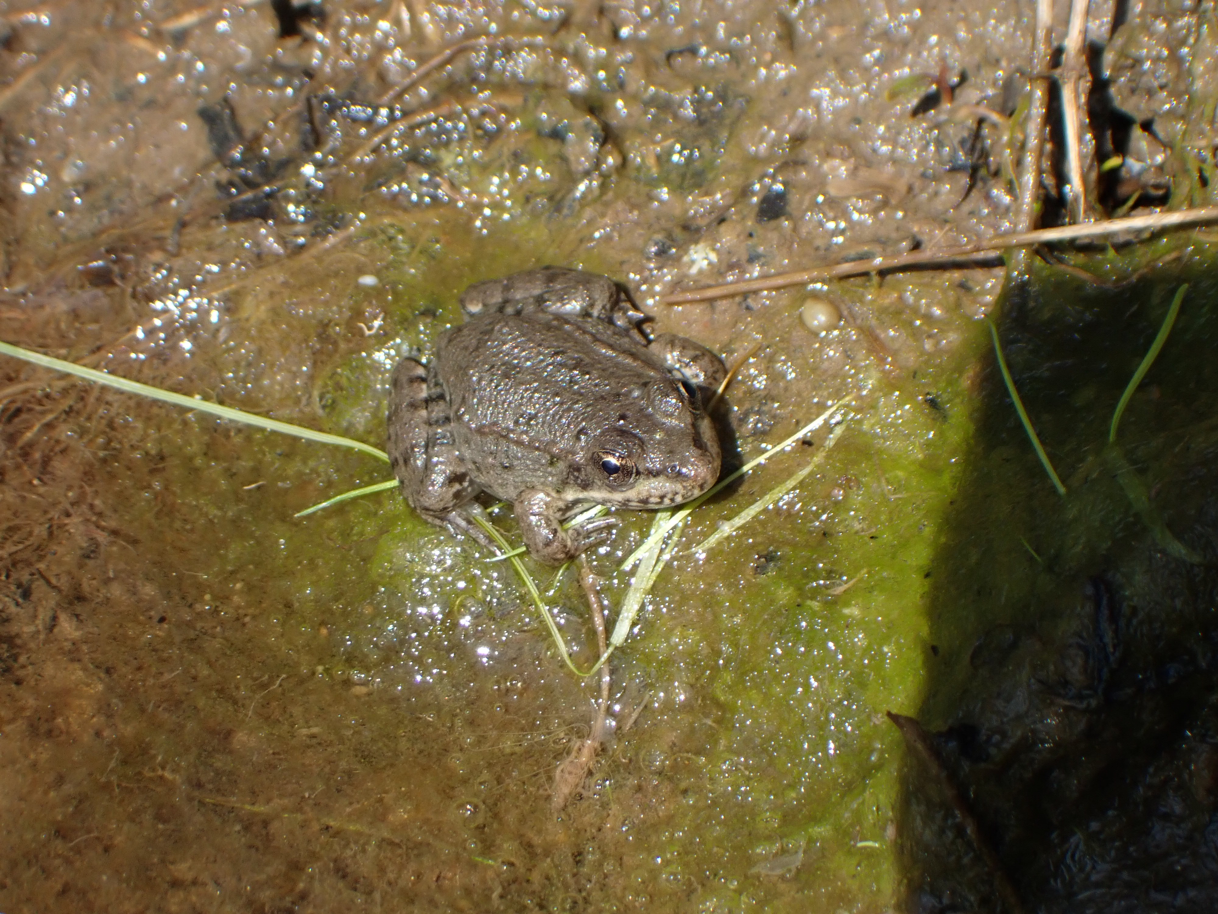 Je n'ai que cette photo, pas pu l'attraper (mare prairiale dans le Tarn, en compagnie de triton palmé). J'ai exclu un jeune de Pelophyax. (bon ?). Je pensais à une jeune grenouille rousse,mais les pustules sur le dessus et le masque facial pas vraiment visible m'ont peut-être fait penser à un jeune crapaud épineux ? Quel critère regarder ? Merci pour votre aide. Olivier