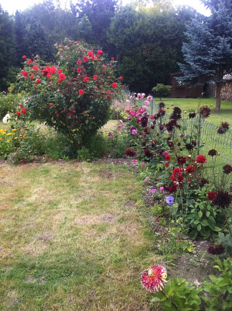 voici le jardin fleurit... culture de salades, tomates (j'en ai plus de 40 variétés elles sont dans une serre à l'entrée du terrain) , maïs, ficoïdes glaciales, pourpiers doré, carottes, pommes de terre ect ect... pour ceux qui le souhaite je fais des échanges de graines
