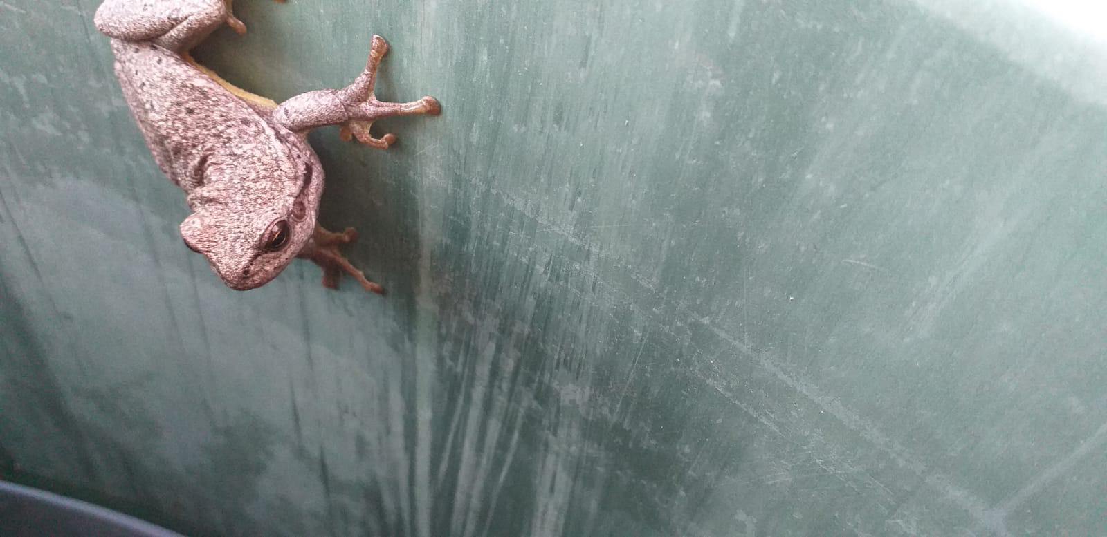 Cette grenouille a été photographiée dans un récupérateur d'eau, dans le Sud-Morvan ( Bourgogne )