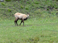 Du 11 au 13.07: le Tessin. Après le Valais, nous sommes descendus au Tessin par le col du Simplon avec un petit crochet par Zermatt, vacances d'hiver de ma jeunesse, pour admirer le Cervin, la moitié supérieure malheureusement dans les nuages. Nous prîmes la route des Centovalli pour Locarno. Nous avons visité le Val Verzasca, recelant quelques trésors architecturaux d'une simplicité efficace. Peu d'animaux, beaucoup de lézards, un chamois solitaire. Une visite aux Bolle di Magadino nous montrera quelques oiseaux dont un couple de grèbes huppés en nidification. De gros orages la nuit ne nous ont pas permis de trouver la salamandre tachetée, pourtant commune là où nous logions (Caviano).