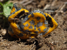 particularités: lorsqu'ils sont dérangés ou agressés, présentent un comportement défensif nommé la catalepsie: les crapauds ainsi dérangés s'arc-boutent sur leur dos et présentent leur face ventrale à leur assaillant, tandis qu'ils rapprochent leurs membres . L'agresseur est alors averti par le jaune du ventre que s'il va plus loin, il risque d'avoir des problèmes. Et c'est ce qui ne manque pas d'arriver si l'agression continue : les sonneurs à ventre jaune produisent alors un produit laiteux, toxique, qui a un goût âcre et putride, et qui a pour effet de faire gonfler les muqueuses. Pupilles en forme de coeur.