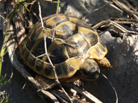 Nous nous consolons avec des tortues d'Hermann, des cistudes Emys orbicularis hellenica à profusion dans n'importe quel type de point d'eau, fossés, mares, puits (elles peuvent sortir d'endroits inimaginables tellement elles sont bonne grimpeuses, un squelette de Zamenis situla, des Pelophylax sp., des Orchis, des sphinx du pissenlit, Amata phegea.