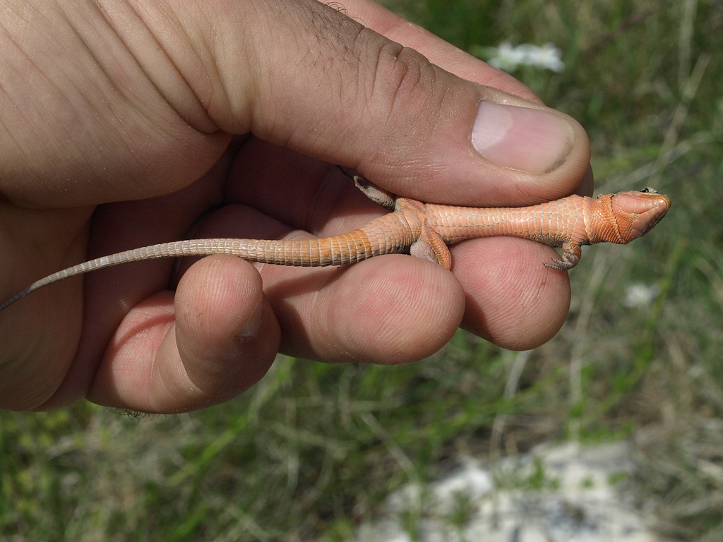 herbes, nous voyons, sentons, entendons fréquemment des reptiles partir mais, dans la plupart des cas, il s'agit soit de Hierophis soit de Pseudopus, assez décevant dans le fond. Berislav a failli attraper une malpolon qu'il tenait par la queue.