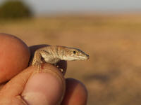 Sur le retour, nous trouvons un endroit bien dégagé pour photographier la céraste, la lumière est magnifique aussi. Près du KM 17 entre Skoura et Ouarzazate, nous trouvons en soulevant des pierres un seps ocellé, Chalcides ocellatus et deux Eremias à gouttelettes, Mesalina guttulata à la nuit tombante.