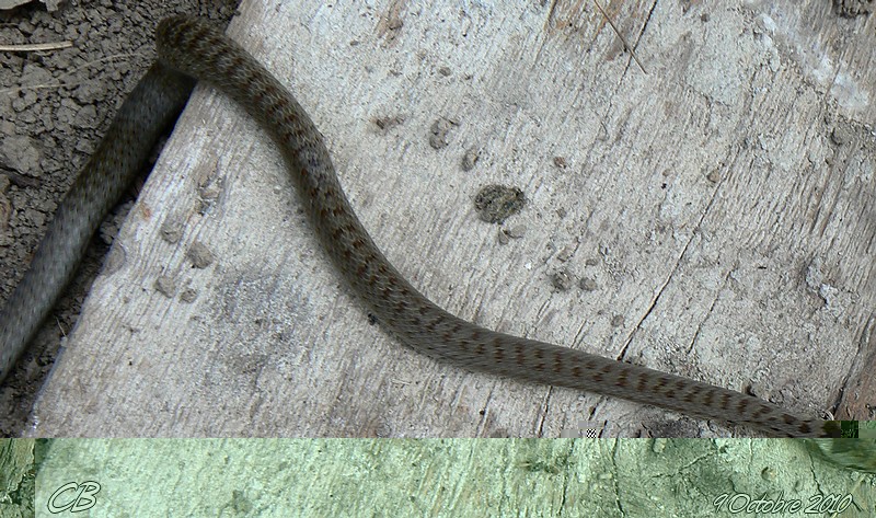 J'ai eu la surprise de voir hier en soulevant ma tôle mise spécialement comme abri pour reptiles, de voir une espèce que je n'ai jamais vu.. malheureusement j'ai un peu raté mes photos mais on voit quand même bien la tête..