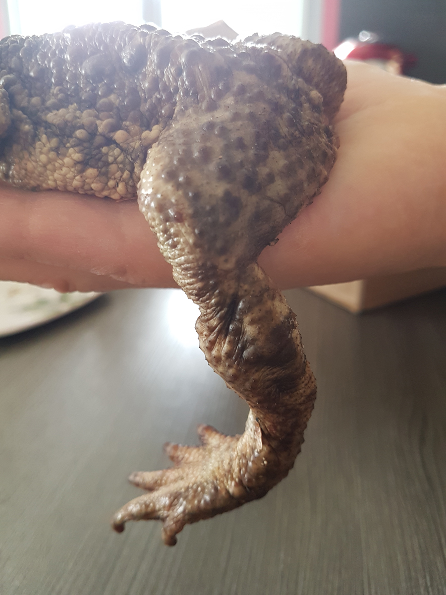Ce matin j'ai trouvée un crapaud avec la patte arrière gauche cassée au niveau de l'articulation, elle pend après le genoux. Suite au articles lus sur le forum, je l'ai placé dans une boite avec du sopalin humide. Dois-je faire une atèle? Je ne sais comment faire, pourriez vous m'aider? Je vais essayé d'envoyer une photo.