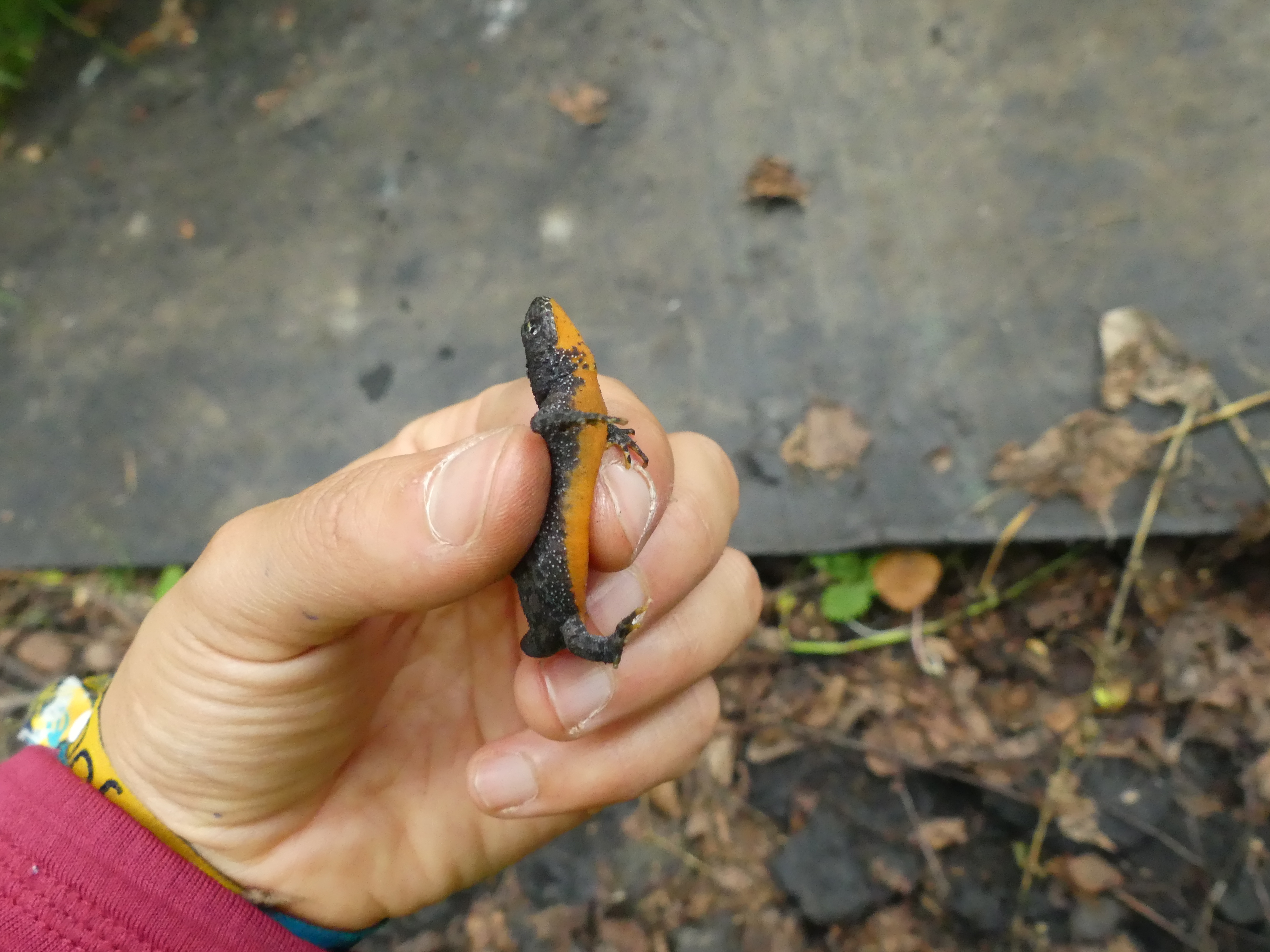 J'ai observé ce triton aujourd'hui (en belgique) et je n'arrive pas à savoir si c'est un triton adulte alpestre (ventre orangé intégralement) ou un jeune de triton crêté (présence de petit points gris-bleu entre le ventre et le dos mais pas de motif sur le ventre orangé...). Qu'en pensez vous??