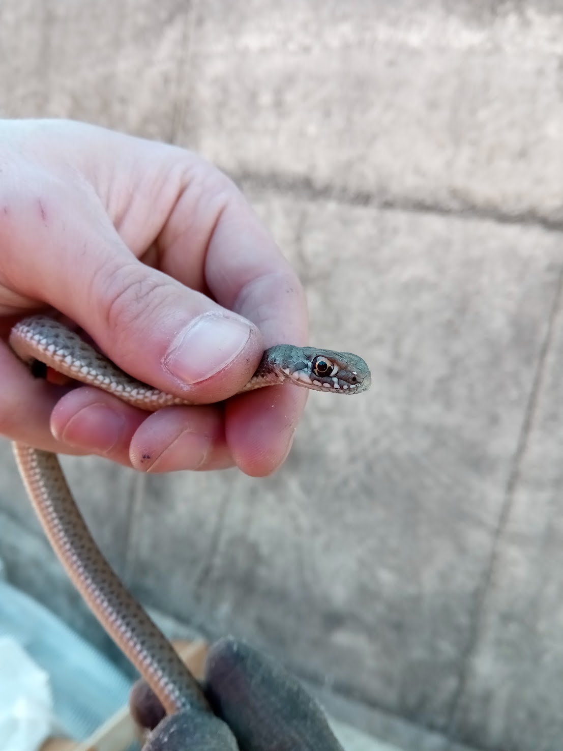 Aujourd'hui, j'ai trouvé un petit serpent sur mon chantier à Apt, dans le Vaucluse. Pupille ronde, donc je me suis dit que allez, on peut l'attraper sans trop de risques !