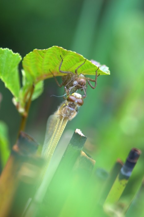 En cette période, un insecte des plus élégant sort de sa période aquatique pour ce transformer en magnifique prédateur aérien. Voici madame libellule photographiée dans mon jardin juste après la sortie de l'eau de l'étang.