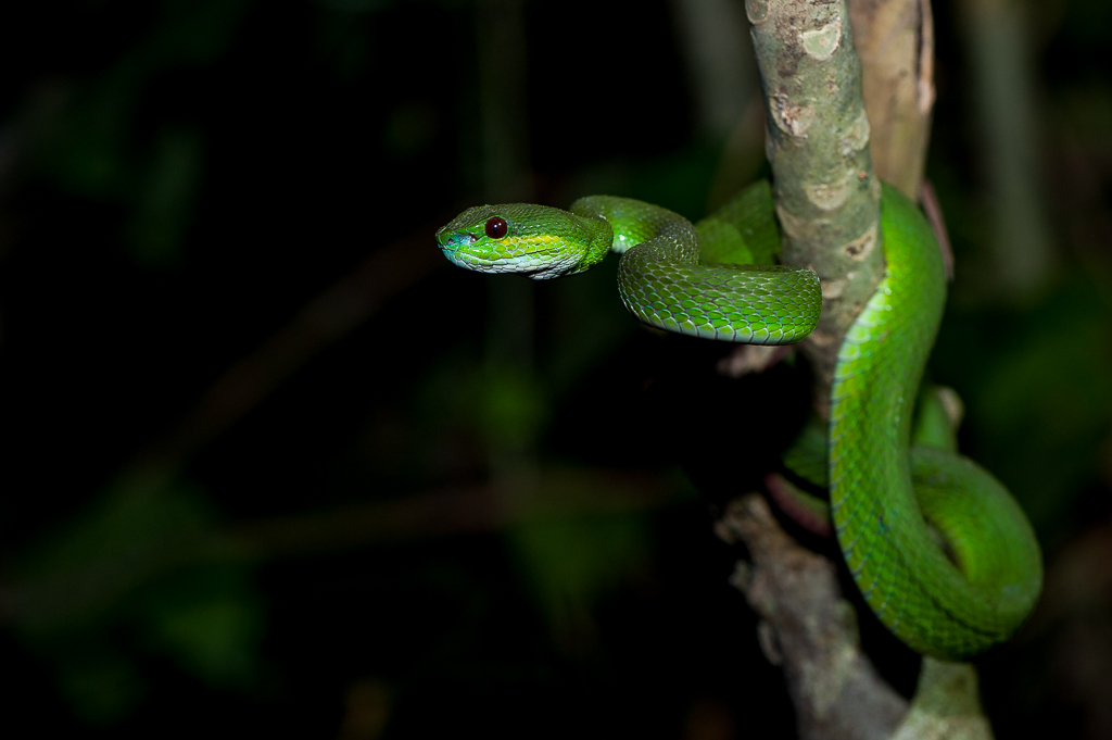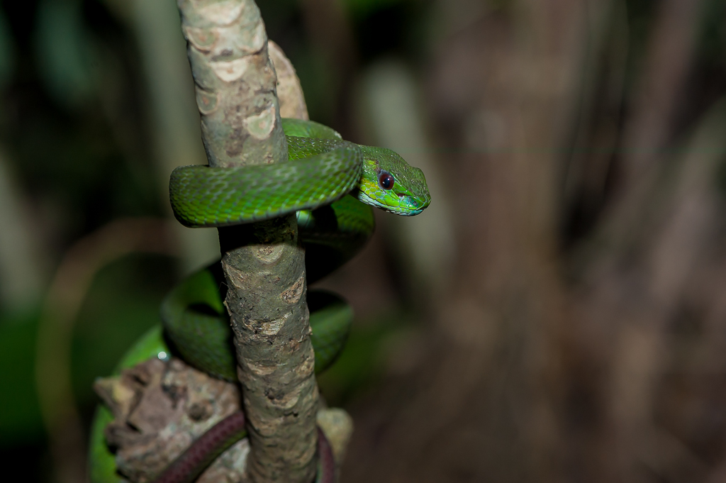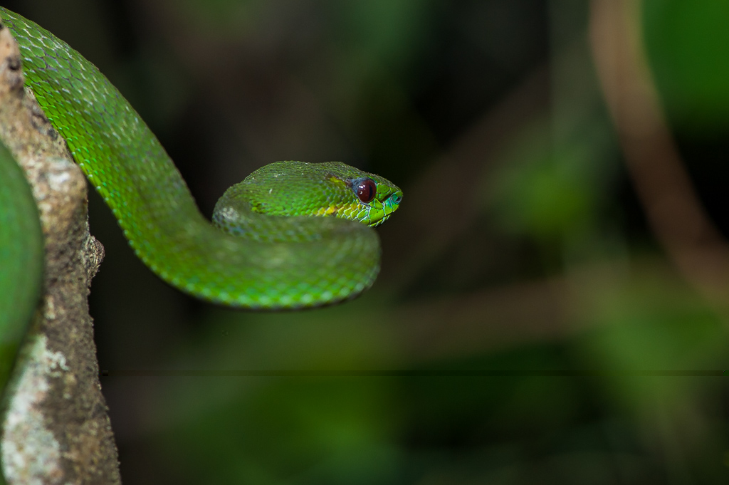 purée j'ai été à Bali en 1982 et 83, jamais rien vu... juste un snake écrasé sur la route... faut dire que je n'ai pas cherché non plus ](*,) C'est encore "Trimeresurus"? Très beau en tous cas !!