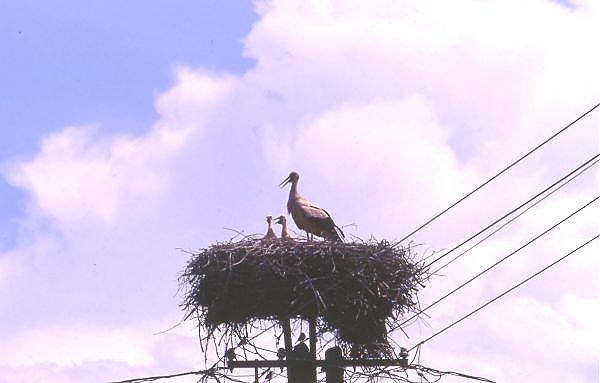 Ceux-ci sont tellement nombreux que je ne saurai me souvenir de tous ceux que j’ai vu. Le plus marquant pour moi fut la vision de tous ce nids de cigognes (Ciconia ciconia) alignés comme à la parade sur le faîte des poteaux téléphoniques dans les petits villages hongrois; les habitants, comme en Autriche d’ailleurs, mettent à disposition de ces grands oiseaux des sortes de paniers plats en fer qu’ils installent soit sur les cheminées, soit au sommet de poteaux de toute sorte. La cigogne est un oiseau habitué à la présence humaine et donc peu farouche; elle garde tout de même ses distances si vous essayez de l’approcher à pied. Un autre échassier très élégant mais nettement plus craintif est la grande aigrette (Casmerodius albus), fréquente, car elle trouve dans les grandes roselières un abri idéal pour la nidification. La seule que j’ai pu photographier était tellement absorbée par sa pèche qu’elle n’a guère fait attention à moi, mais me tenait certainement à l’œil. Elle se trouvait au bord des étangs qui longent la route menant au port d’Illmitz. On peut également la voir chassant quelques rongeurs dans les champs, souvent en compagnie du héron cendré (Ardea cinerea). Le héron bihoreau (Nycticorax nycticorax) est un petit héron aux yeux rouges, particularité qui permet une meilleure vision nocturne, je ne l’ai aperçu qu’une fois, en vol. D’autres ardéidés tel le héron pourpré (Ardea purpurea), le héron butor (Ixobrychus minutus), le héron butor étoilé (Botaurus stellaris), se cachent au plus profond des roseaux; il est possible, bien que ces animaux deviennent fort rares, de les observer au crépuscule volant près du lac. La spatule blanche (Platalea leucorodia) est en voie de disparition dans la région, de même que la grande outarde (Otis tarda) qui a été trop chassée dans les années soixante. Un moment rare a été l’observation furtive de l’élégant vol de la huppe (Upupa epops). En fin de journée du lundi, étant pris d’un vague à l’âme de n’avoir pas trouvé encore de crapauds verts, je décidai d’aller marcher dans un pré quand le chant de la caille (Coturnix coturnix), sorte de oup,oup,oup, rapide, me donna envie de la repérer: plus je m’approchais de l’origine du son, dans les 3 mètres, plus celui-ci changeait de direction, ou se taisait! Caille entendue, approchée mais point vue. Je me suis alors consolé en regardant s’envoler puis chanter la délicate alouette ou cochevis huppée (Galerida cristata). La bergeronnette printanière (Motacilla flava) me suivit le long d’un chemin près de la maison de l’administration du parc à Apetlonerhof, poussant son « psiit, psiit » et me surveillant: je devais certainement être près de son nid. Dès l’automne, des grands rassemblements d’oies cendrées (Anser anser) sont observés; lorsque je m’y suis rendu en juin j’ai pu voir plusieurs troupeaux d’une vingtaine d’individus. Le long des routes, de nombreux écriteaux rendent les conducteurs attentifs afin de ne pas écraser ces volatiles, surtout lorsqu’ils sont habitués aux visiteurs. Je ne me lasserai jamais d’admirer le vol planant au dessus des champs et des roselières du busard des roseaux (Circus aeruginosus), élégant rapace de taille proche du milan que nous connaissons bien. De nombreux limicoles sont à la recherche de leurs petites proies au bord des nombreux étangs. La salinité de ceux-ci leur procure presque autant de nourriture (vers, crustacés) que si ils étaient en bord mer. En marchant dans un prés, je fus surpris par l’attitude d’un couple de vanneaux huppés (Vanellus vanellus), dont l’un volait autour de moi de manière assez proche, et l’autre gambadait, tout en gardant une certaine distance, devant moi; je ne devais pas être loin de leur nid. Ce même comportement manifestant l’inquiétude des parents et dans le but d’éloigner le prédateur que j’étais a été adopté par l’avocette (Recurvirostra avosetta), élégant oiseau blanc et noir muni d’un bec recourbé vers le haut. Je citerai encore l’apparition au milieu de la route du petit Gravelot (Charadrius dubius), et du chevalier gambette (Tringa totanus) que j’ai reconnu à son chant. D’autres espèces nombreuses de limicoles étaient là, mais je fus bien incapable de les identifier, n’étant ni ornithologue ni équipé de matériel d’observation ou de photo adéquat. Lors d’une ballade en Hongrie pour des repérages de jour afin d’augmenter mes chances d’observer des batraciens la nuit, je suis tombé par hasard sur une corneille mantelée (Corvus corone), cousine de notre corneille noire mais avec le dos et la poitrine cendrée qui ne m’a pas laissé l’occasion de la photographier. La pension Seehof à Illmitz, comme quasiment toutes les habitations des environs procurent nichoirs et refuges à l’hirondelle de fenêtre (Delichon urbica). Leurs jeunes étaient déjà grand, je m’amusais à repérer la fréquence des allées et venues de leurs parents. Je peux encore citer la présence de la tourterelle turque (Streptopelia decaocto) et de sa cousine plus rare, la tourterelle des bois (Streptopelia turtur).